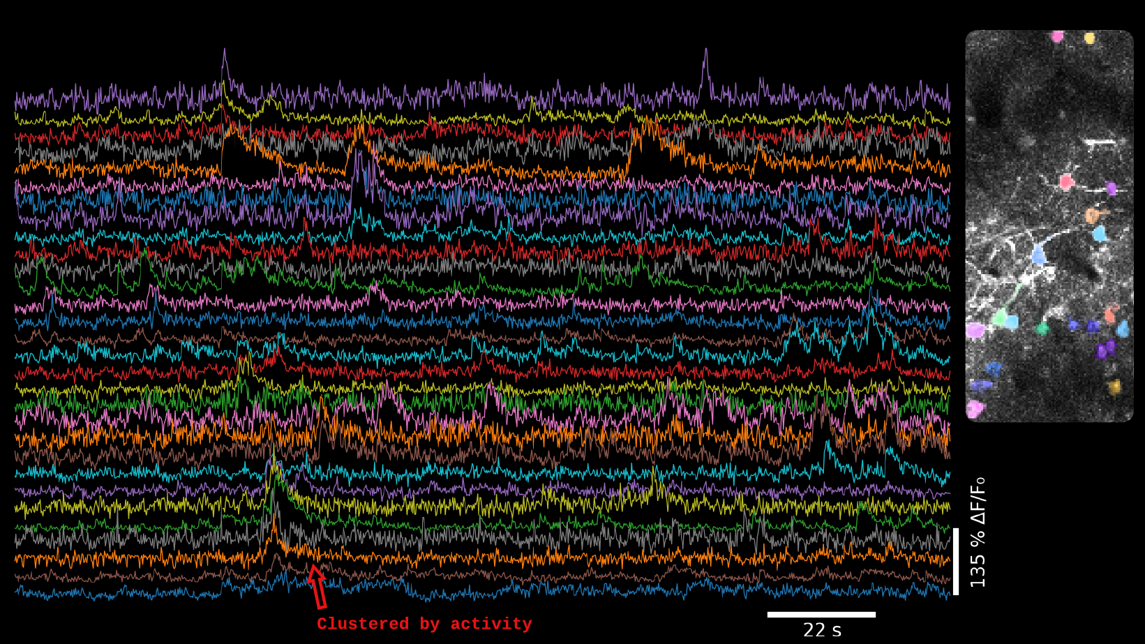 The Miller Brain Observatory has developed an optimized LBM module and paired it with an open-source microscope design, MIMMS (Modular In vivo Multiphoton Microscopy System). This refinement building upon the proof-of-principle LBM design [1] and achieves sub-cellular resolution by generating a column of light-beads from each high-energy pulse emitted by a low repetition laser source (5 MHz). The light-beads span multiple axial locations (up to 30 across 500 microns) within a sample volume, with each light-bead’s power optimized as a function of depth. Furthermore, LBM utilizes a single excitation pulse to optimally address each voxel. As such, volumetric recording to capture large fields of view is possible at the rate a single plane is recorded by conventional 2-photon microscopy. An in-depth overview of the technology is provided in the summary write-up.