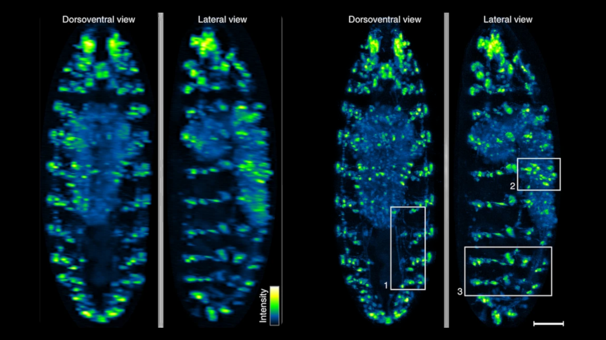 This configuration is well-suited to capture whole-brain activity at high spatial and temporal resolution in invertebrate model organisms, and is poised to open new avenues to investigate the fine-scale dynamics of neural activity, including synaptic integration, compartment-specific plasticity, and the subcellular correlates of learning, memory, and behavior.